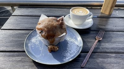 I have ordered a flat white at six of the eight-odd coffee shops in town. The coffee is mostly decent, a couple I’d rate as good. I paid $8.50 for a muffin the other day and knew for sure this was a holiday town with holiday rates to match.